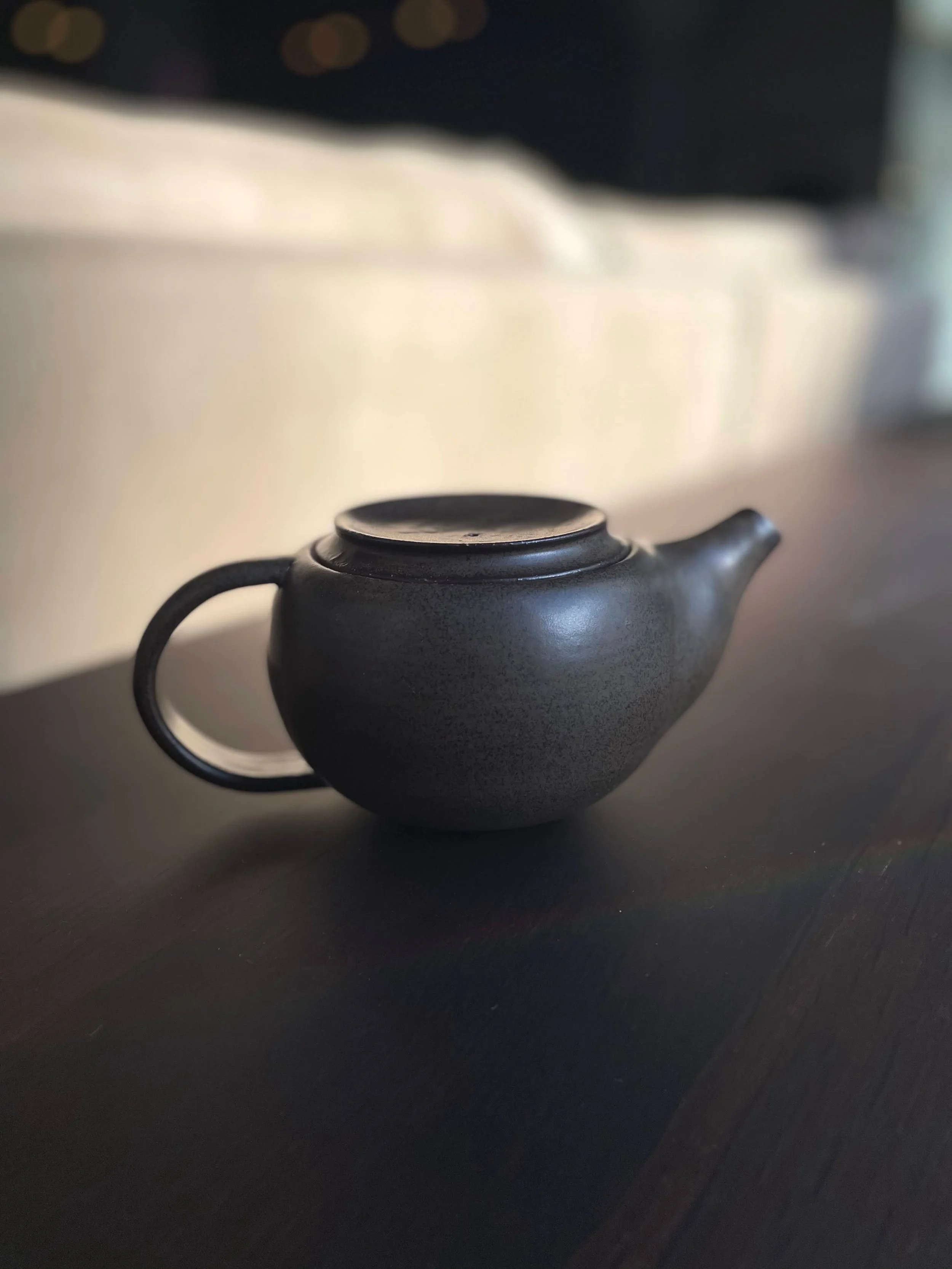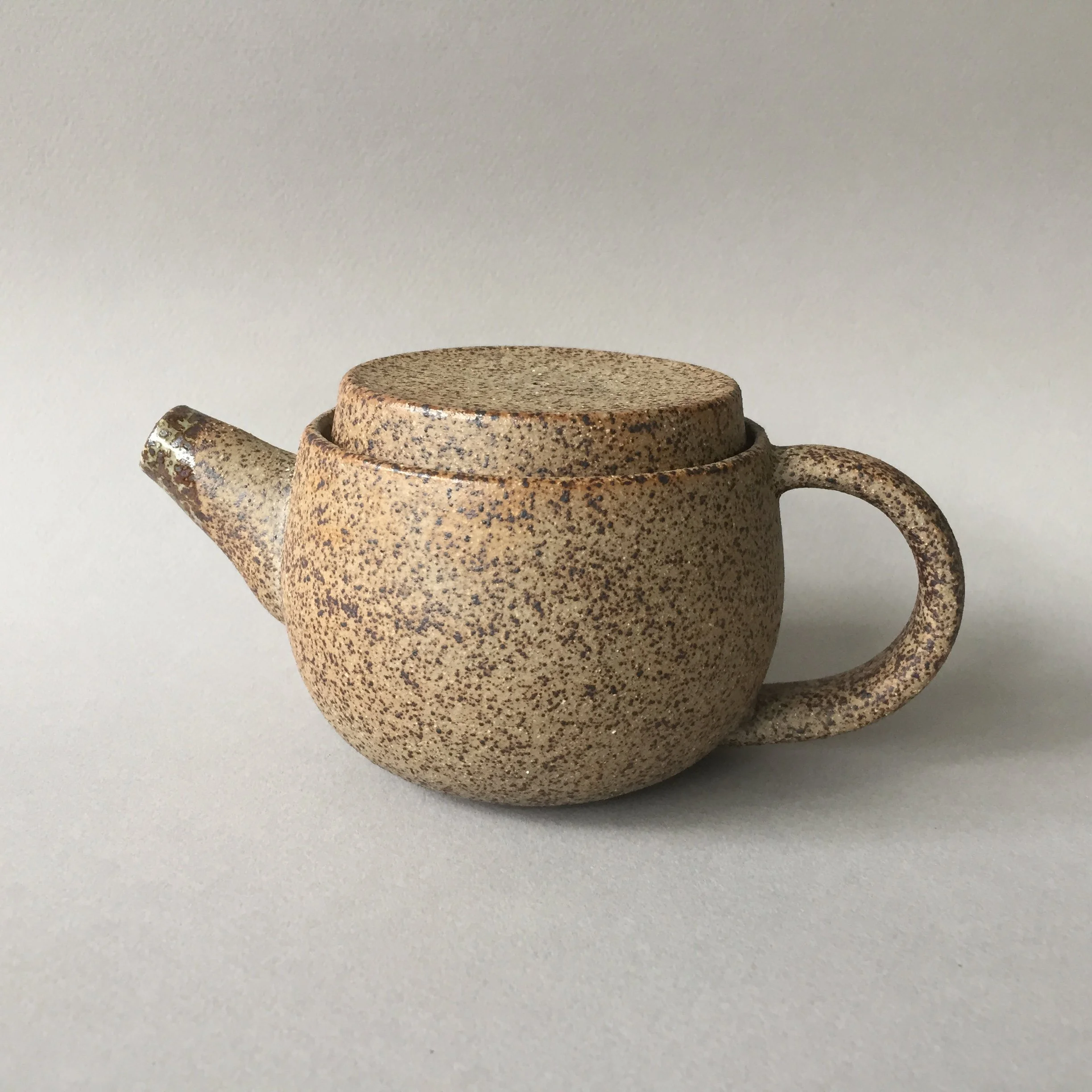 A teapot pursuit was the origin of this piece. I thought the lid was too wide to make a functional teapot (a large area for the heat to escape from), so I decided to make it into a container of some sort. To my horror, I thought clay gods were suggesting I made an urn for a fluffy creature, but in denial I kept working on it (I am an obedient servant). My husband was the one who suggested I was making a biscuit jar. Of course, this chubby acorn-like vessel had to be an object of joy.
